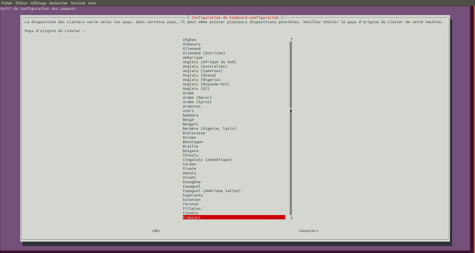 Cette configuration est celle par défaut sous Ubuntu et Debian. Vous pouvez sélectionner d'autres options si vous le souhaitez.