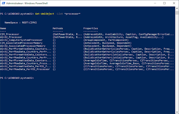 Vous avez pu remarquer que certaines des classes étaient préfixées par CIM_ ou par Win32_.